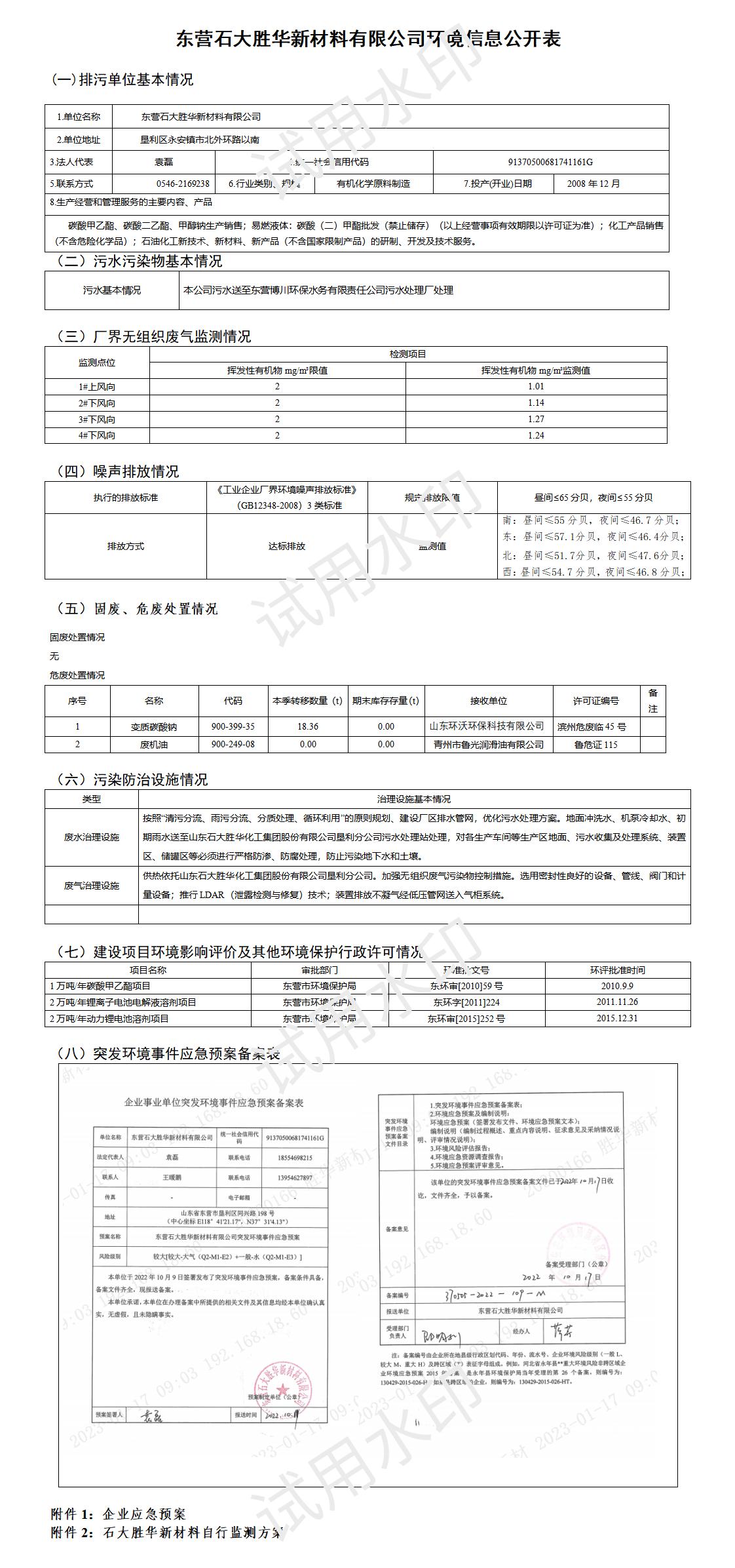 东营石大胜华新材料自行监测方案2023.docx